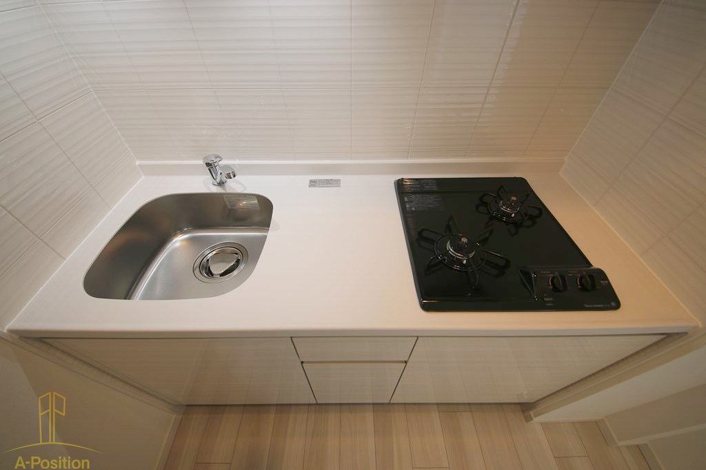 また、キッチンはコンパクトながらも機能的で、無駄のないデザインが日々の生活を快適にサポートしてくれそうです。全体的に洗練されたシンプルモダンな内装で、自分らしい暮らしを演出するのにぴったりの空間です。