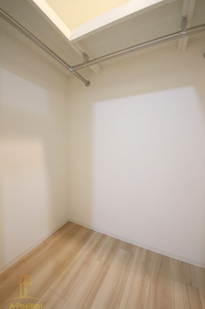 上部棚+バーという基本構成なので、用途に応じて棚板の追加・バーの高さ調節などがしやすいと思われます。また、天井近くまで棚が設けられているため、上部空間を使えば季節外のものや普段あまり使わないものを収納できそうです。