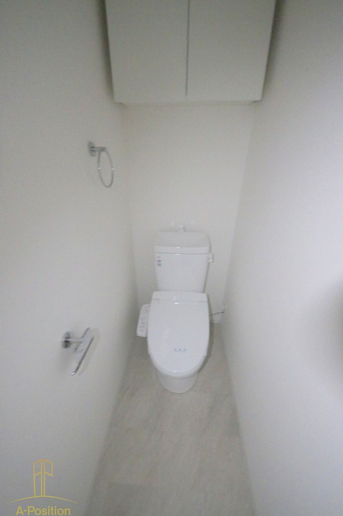 やわらかな照明とフロアカラーが心地よいトイレ空間。