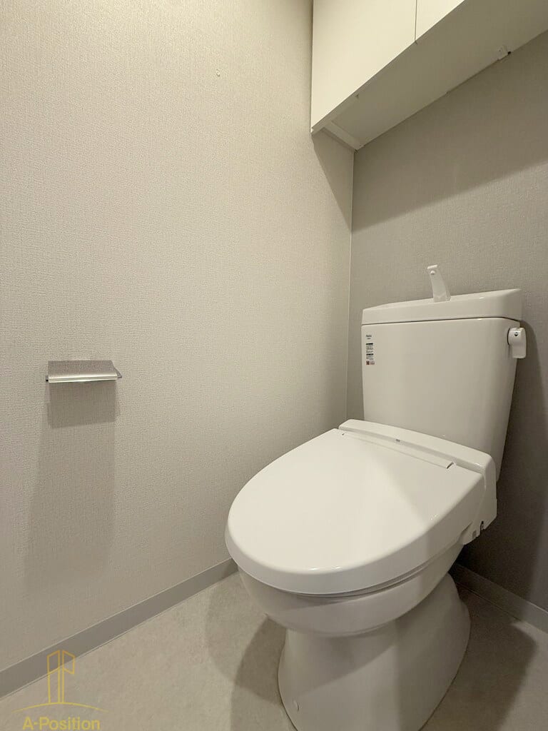上部には収納棚を備えており、トイレットペーパーや掃除用品をすっきり収納可能。生活感を抑え、空間を美しく保てます。