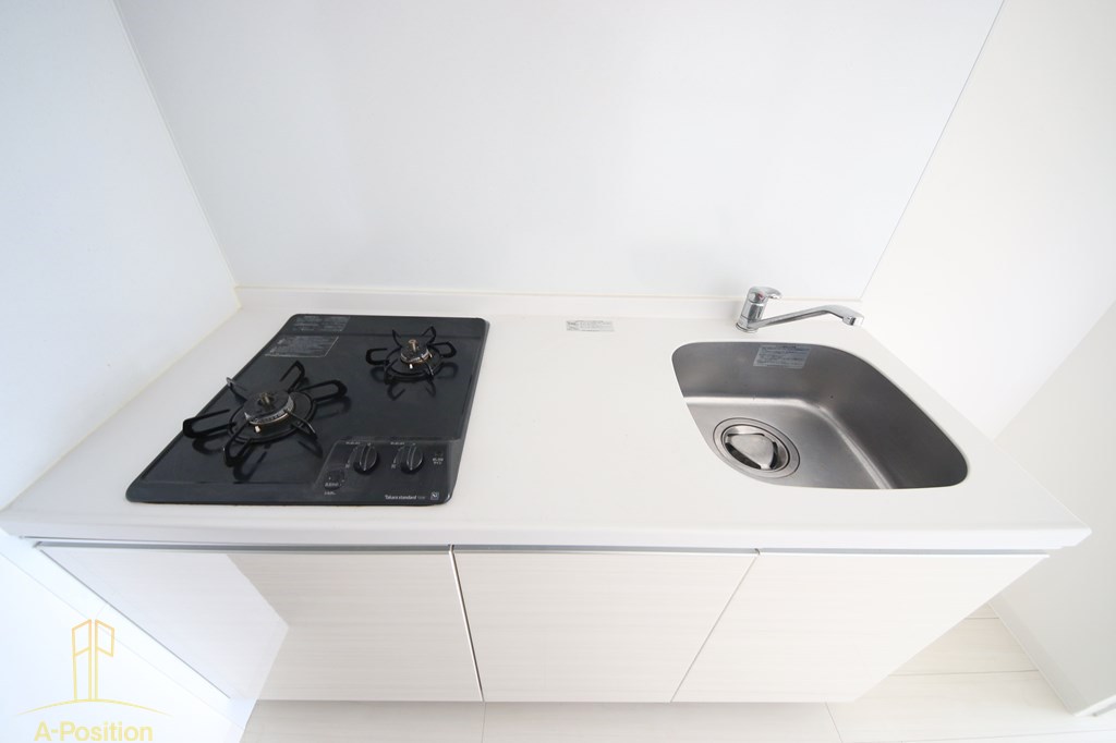 コンロは2口ガスコンロで、単身者〜二人暮らし初期であれば現実的かつ十分な仕様です。同時に複数の調理を行えるため、自炊頻度が高い人にも対応できます。操作部がフラットで視認性が高く、使い勝手と安全性の両立が意識されている点も好印象です。一方で、グリルがないタイプに見えるため、焼き魚などを頻繁に調理する人にとっては少し工夫が必要になるでしょう。