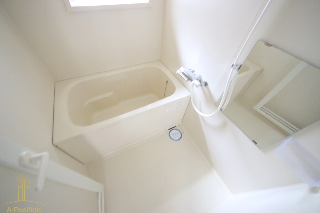 まず大きなポイントは、浴槽と洗い場が分かれた独立型バスルームであることです。写真からも分かる通り、浴槽はしっかりと深さと長さがあり、肩まで浸かれるサイズ感。一人暮らし用の物件にありがちな“とりあえず浸かれるだけ”の浅い浴槽ではなく、ちゃんと疲れを取るための浴槽です。仕事終わりや寒い季節に、この差はかなり大きく感じるはずです。