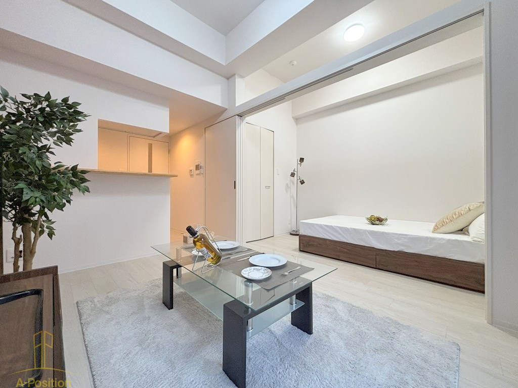 スライド式の間仕切りにより、リビングとベッドスペースを分けて使えるため、生活にメリハリをつけられます。