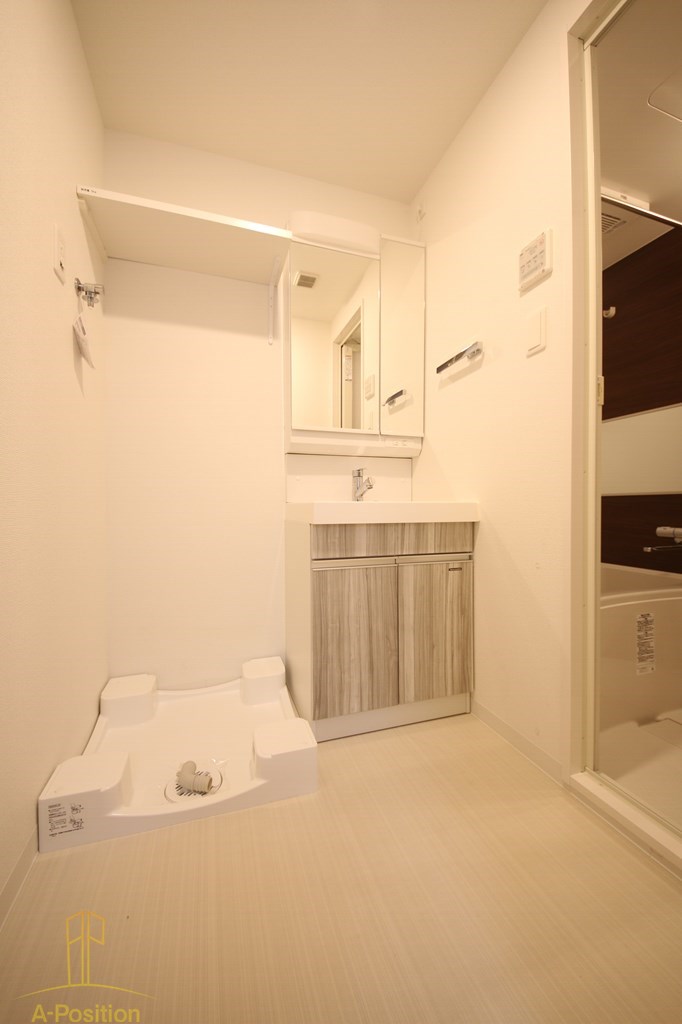 単身向けマンションでは珍しいほど使い勝手の良さが際立つポイントです。洗面台・洗濯機置き場・浴室が一か所にまとまり、毎日の“支度動線”がとてもスムーズ。朝の準備や帰宅後のシャワーまで、無駄なく動けるレイアウトになっています。