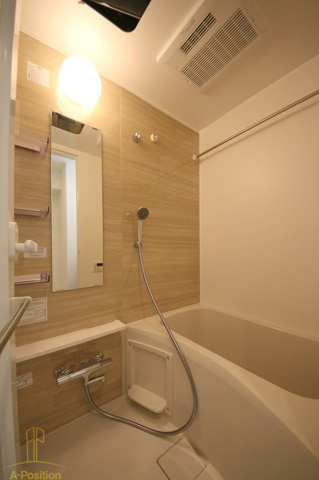 清潔感あふれるユニットバスは、木目調パネルを採用し、落ち着きのある上質な雰囲気。浴槽はしっかりとしたサイズ感があり、一日の疲れをゆったり癒せます。シャワーは使いやすい位置に設置され、鏡や棚も備わっているため実用性も◎。浴室乾燥機付きで、雨の日の洗濯や湿気対策にも重宝します。毎日のバスタイムが楽しみになる、快適さとデザイン性を兼ね備えた空間です。
