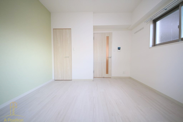 白を基調とした明るい内装に、アクセントクロスがさりげなく映える洋室。バルコニーに面した大きな掃き出し窓からは自然光がしっかり入り、日中は照明いらずの心地よさです。家具の配置がしやすい整った形状なので、ベッドとデスクを置いても窮屈さを感じにくいのもポイント。エアコン設置済みで、引っ越し後すぐに快適な新生活をスタートできます。一人暮らしにちょうどいい、落ち着きと開放感を兼ね備えた空間です。