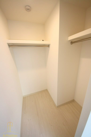 しっかりとした広さを確保したウォークインクローゼットは、一人暮らしには十分すぎる収納力。ハンガーパイプが2面に設けられており、洋服を種類ごとに分けて収納できるのが魅力です。コートやワンピースなど丈の長い衣類もすっきり収まり、床部分には収納ボックスやスーツケースを置くことも可能。居室を広く、きれいに使えるのは大容量収納ならでは。お部屋をすっきり見せたい方に嬉しいポイントです。