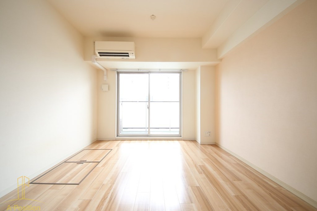 また、天井や梁の圧迫感が少なく、家具の配置がしやすい点も実用性の高さを感じさせます。ベッドやソファ、デスクを置いても動線をしっかり確保でき、シンプルながらも生活をイメージしやすい間取りです。壁面がフラットなため、テレビボードやシェルフ、アートを配置しても空間が散らからず、自分らしいインテリアを楽しめます。エアコンが設置済みなのも、入居後すぐに快適な生活をスタートできる安心材料のひとつです。