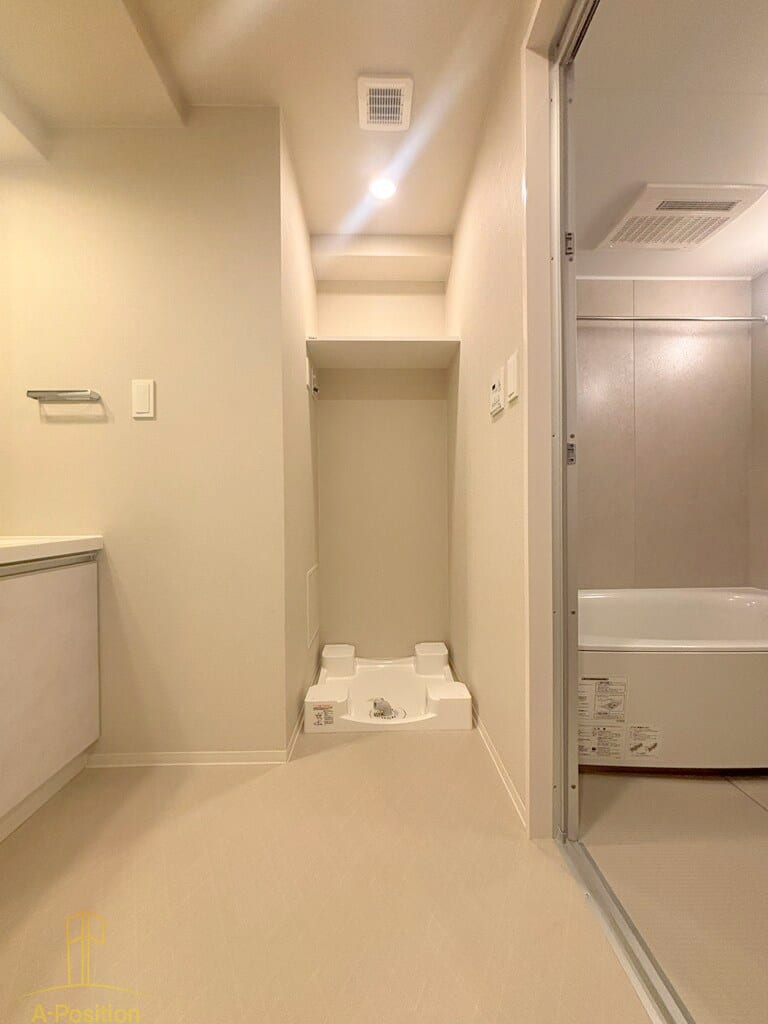 タオルや洗濯物を置ける余裕のある広さがあり、家族での利用にも便利。