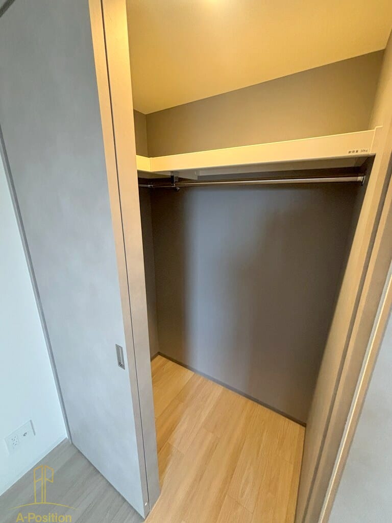 奥行きのあるウォークインクローゼットは、収納力たっぷりで日々の暮らしをすっきり整えてくれます。衣類はもちろん、バッグや小物、季節物の収納にも余裕があり、ライフスタイルに合わせた使い方が可能です。