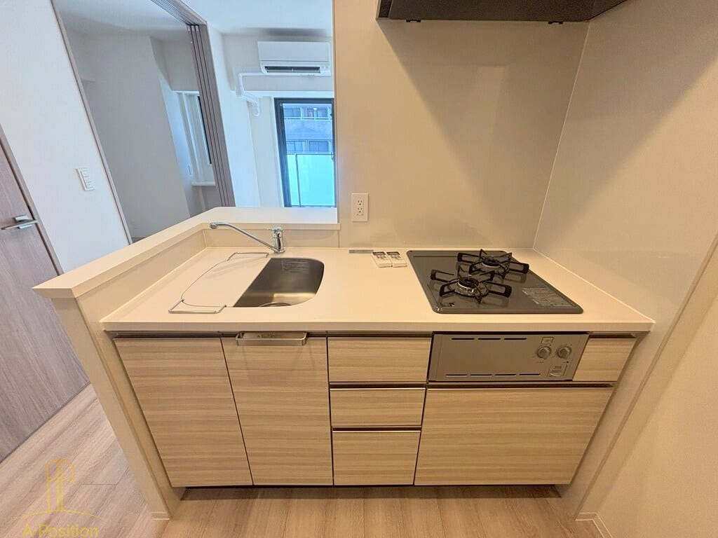 2口ガスコンロを備えており、複数の料理を同時に進められるため、毎日の自炊や作り置きにも便利です。
